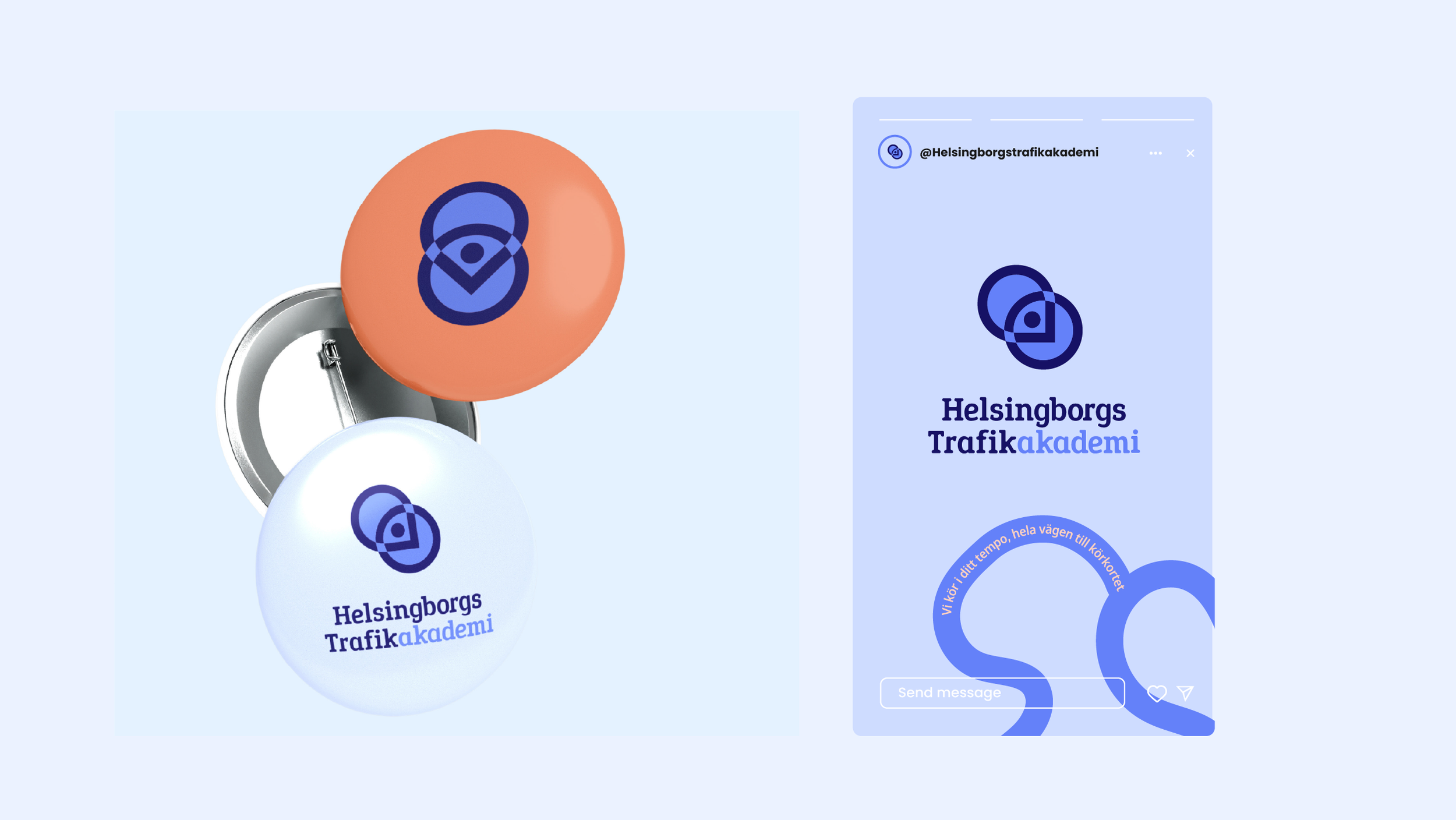 Logotypen utgår från relationen mellan elev och instruktör, inte som idé utan som vardag. Någon sitter bredvid, någon guidar, någon tolkar situationen i realtid. Det är där tryggheten byggs, och det är där varumärket behöver vara konsekvent.